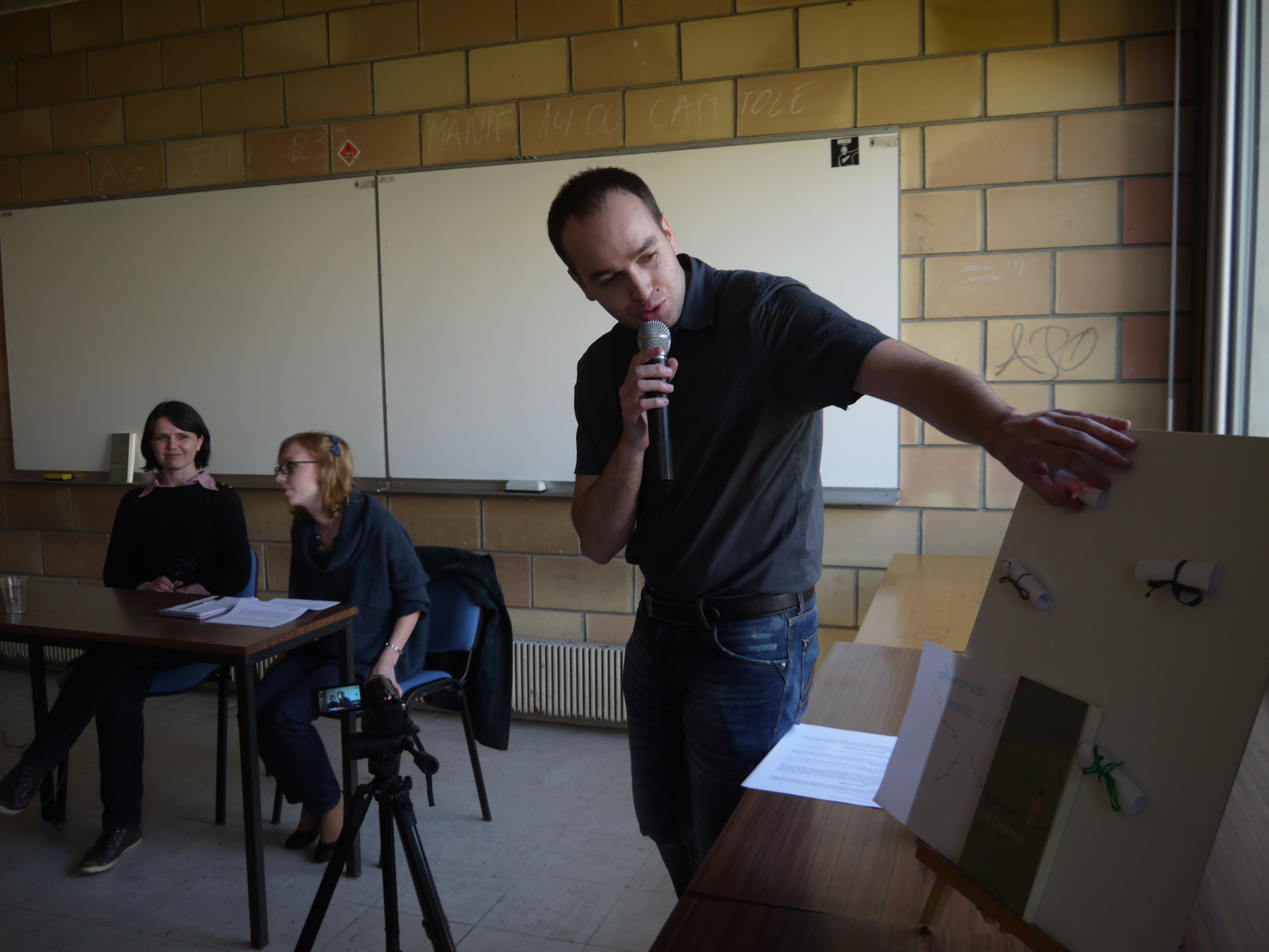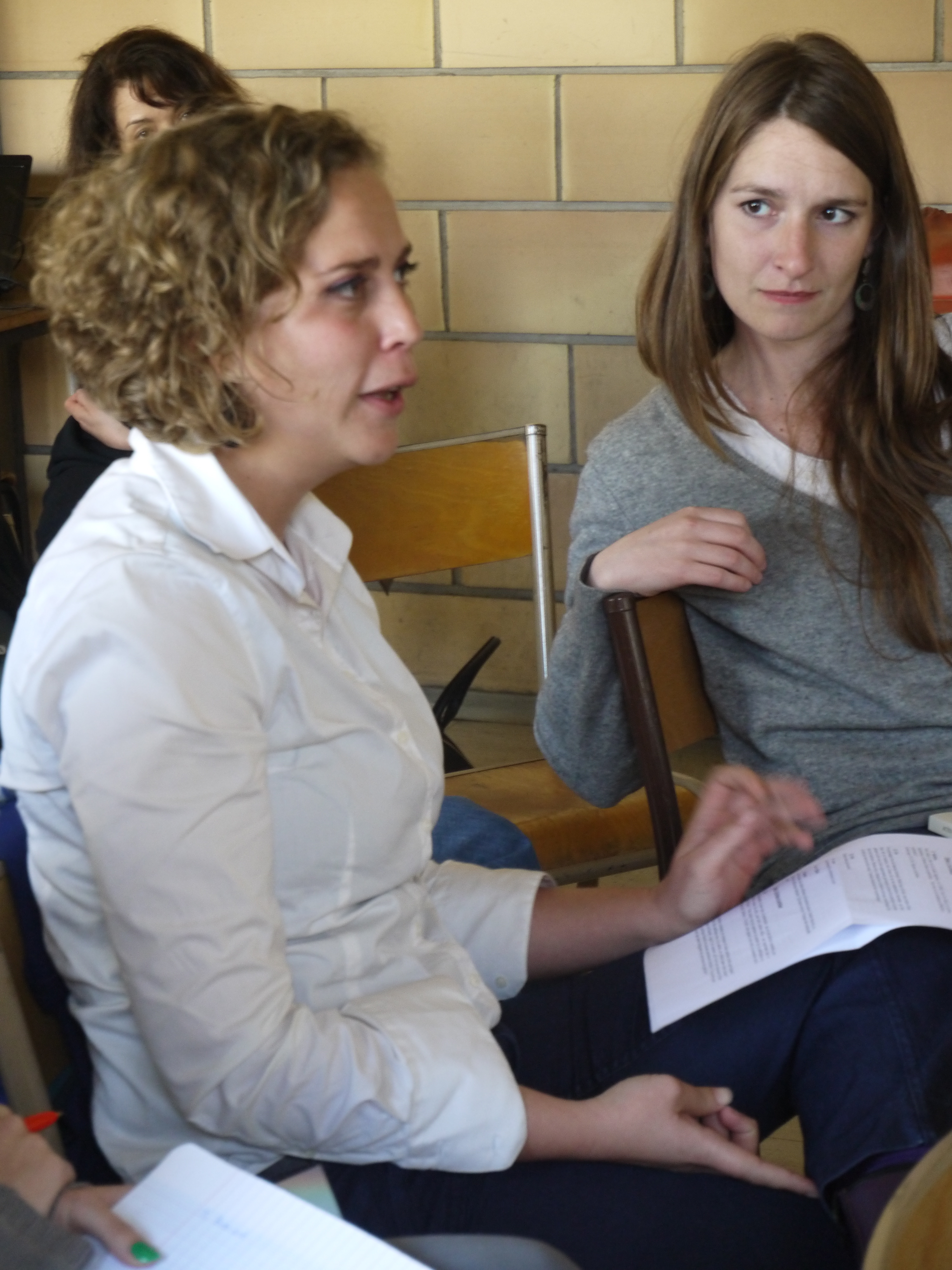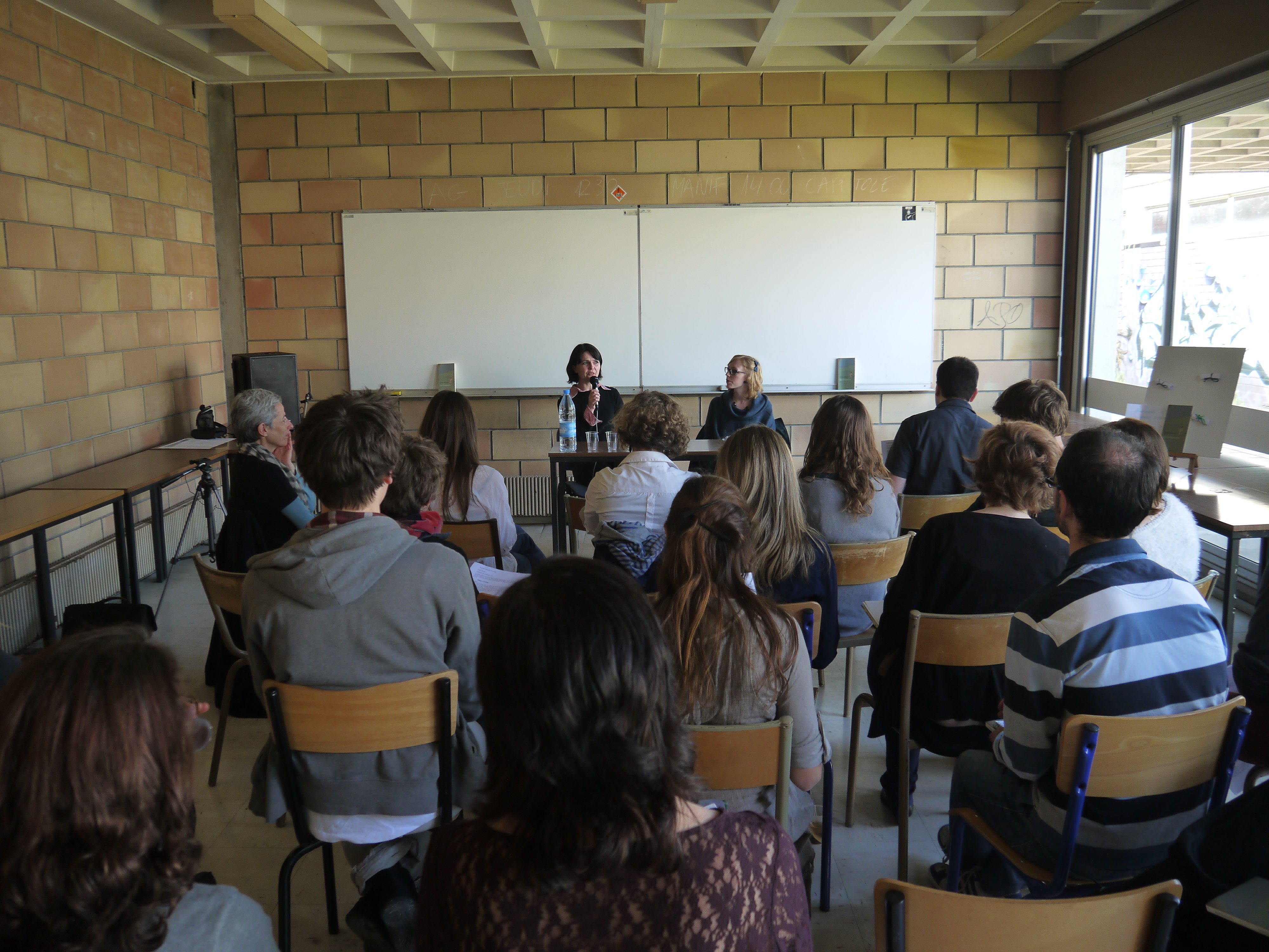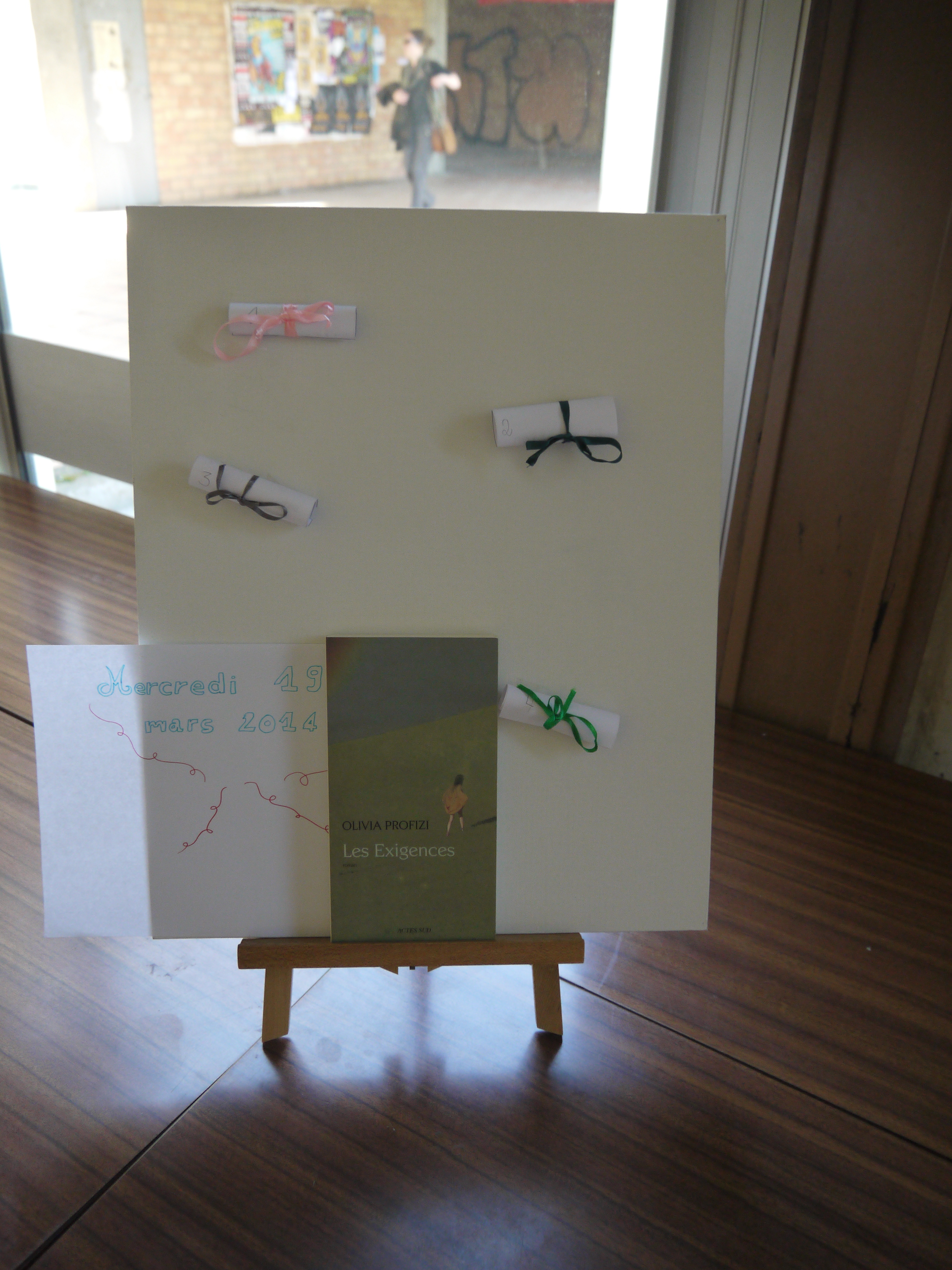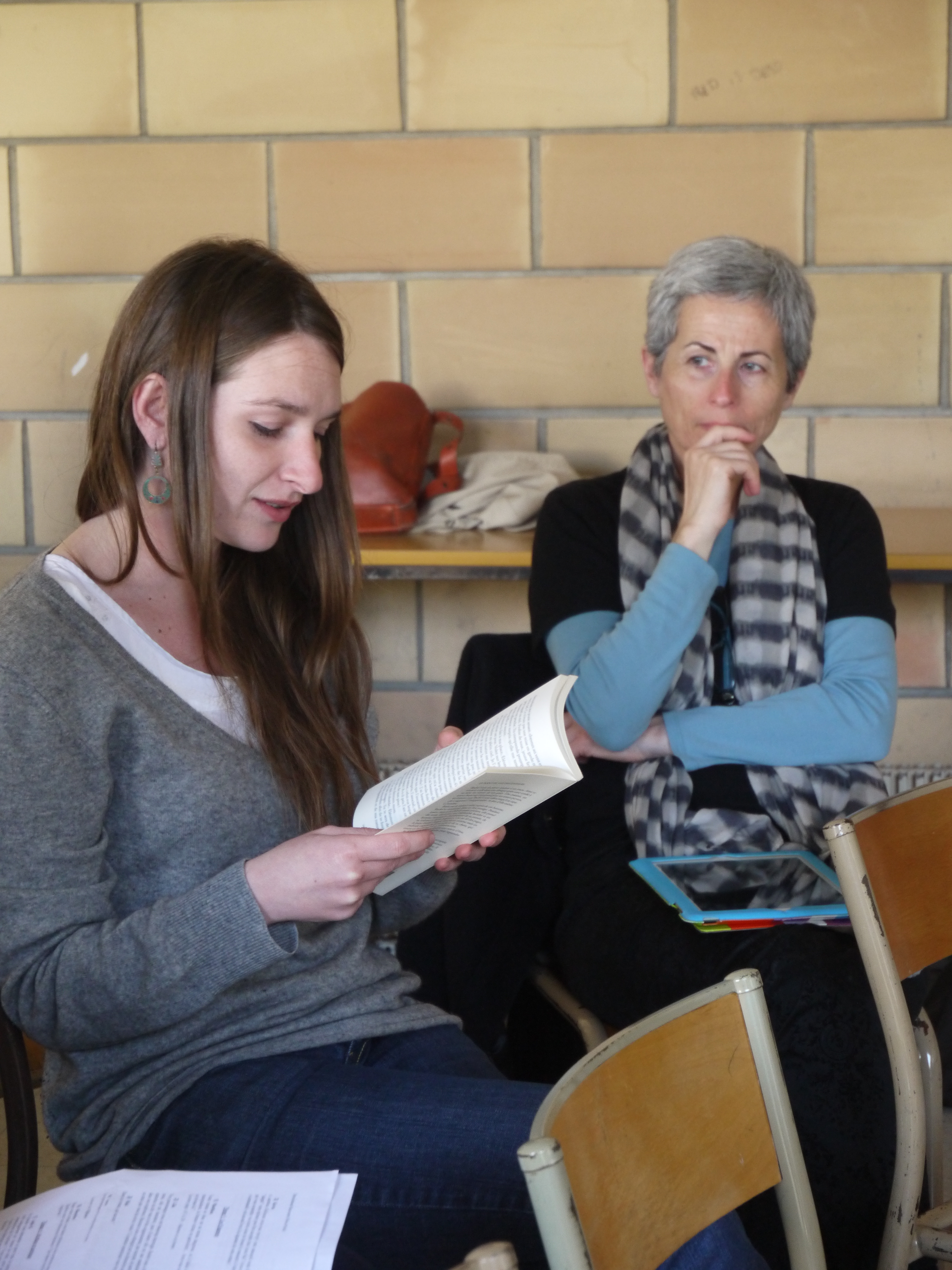 Tiffanie Gabu lit un extrait des Exigences sous l'œil d'Hélène Duffau